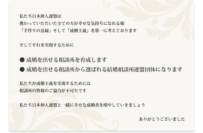 「手作りの良縁」そして「成婚主義」を第一に考えております