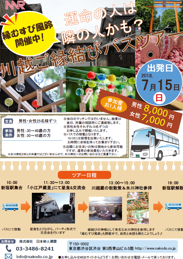 7/15(日)婚活バスツアー開催!川越氷川神社でご縁結び