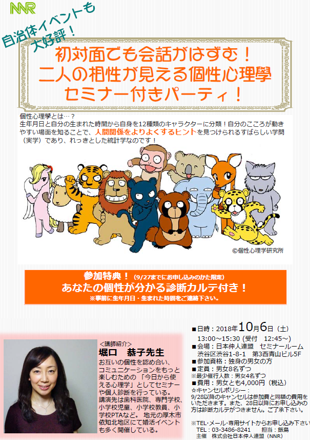 10/6(土)第二弾イベント開催!個性心理學を使って相性ピッタリのお相手探し♪