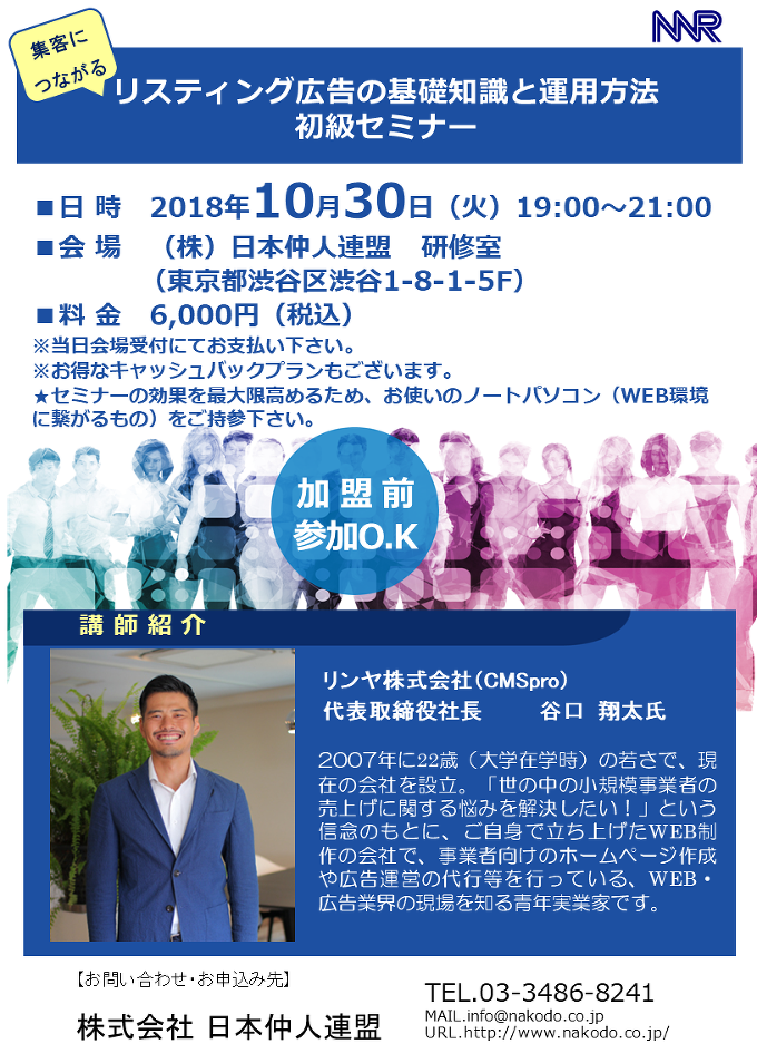 加盟前の方必見!!どなたでも、ご参加可能な『集客につながるリスティング広告の基礎知識と自身での運用方法(初級編) 』