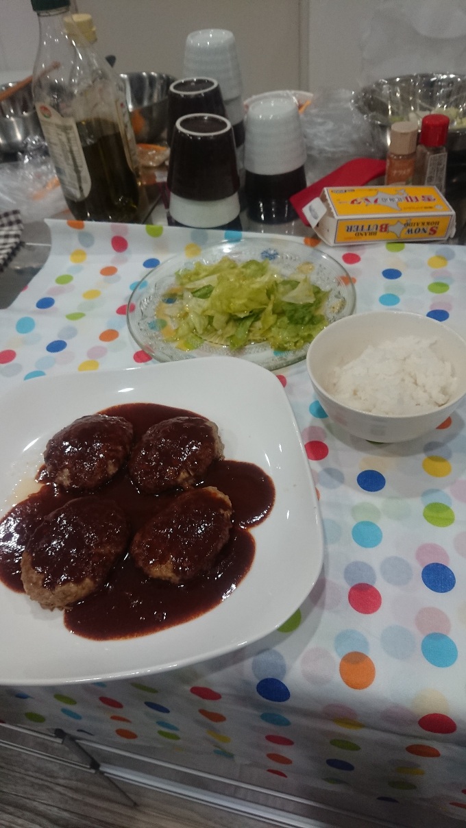 その後は席の移動をしながら、それぞれのハンバーグのシェア!