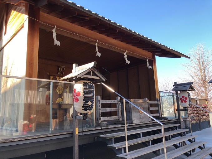 赤城神社の本殿は前面ガラス張り、スタイリッシュという言葉がしっくりくる、お洒落な神社でした。