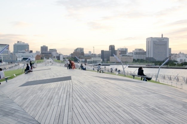 イベントやドラマの撮影でも使われ、ウッドデッキからみなとみらいの景色をバックに撮影されたシーンをご覧になったことがある方も多いのではないでしょうか? こちらで、先ほどのバラ園とは違う方とペアになって個々に散策。イベント当日は夜景にはまだ早い時間帯でしたが、日が落ちきる前の心地よい秋風のなかで、素敵な景色を眺めながら交流を深めていただきました。
